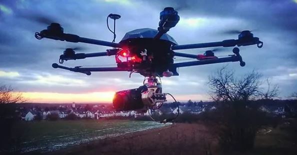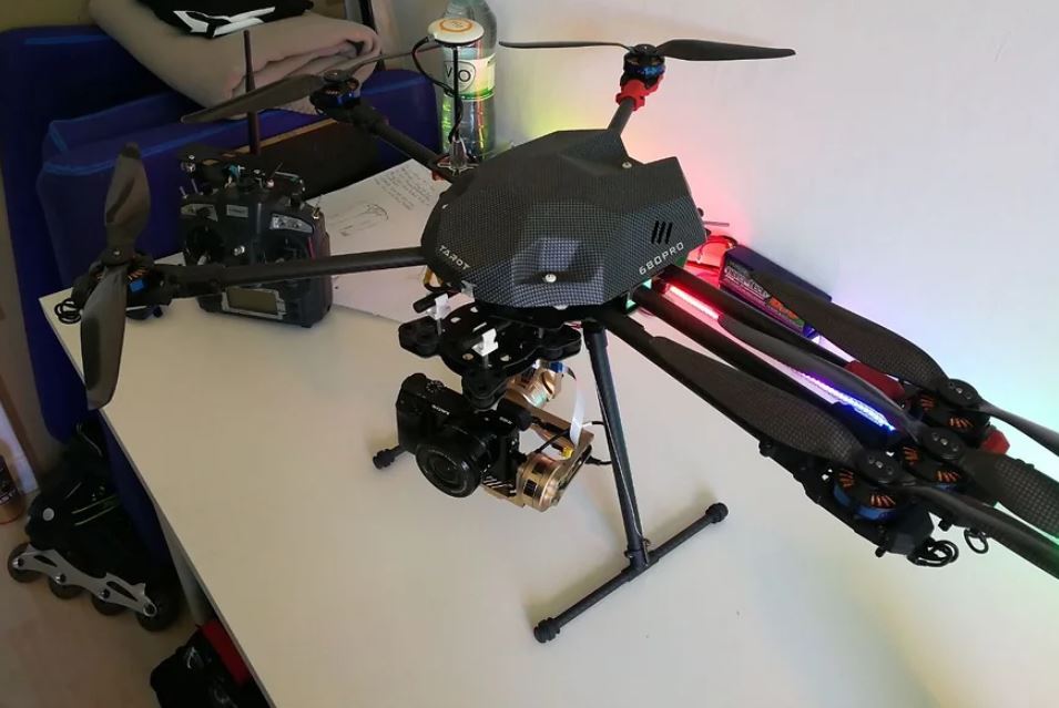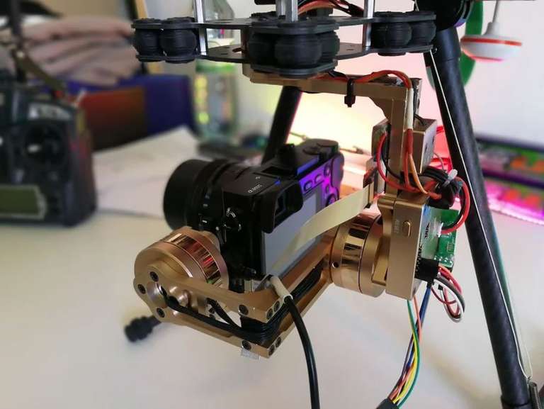 Jetzt ging es darum eine gute Kamera/Film Drohne daraus zu machen. Ich bestellte mir ein einfahrbares Fahrwerk und tauschte meine zwei 5000 mAh 14,8 Volt Flat Akkus gegen zwei "normale" dicke 5000 mAh 14,8 V LiPo Akkus. Ein gutes 3 Achsen Gimbal darf natürlich bei so einem Equipment nicht fehlen weshalb der Postbote mir nach 2 Wochen Wartezeit eins bescherte. Bei der Anpassung des Gimbals habe ich mich sehr schwer getan. Es ist also ein eigenes Kapitel für sich.