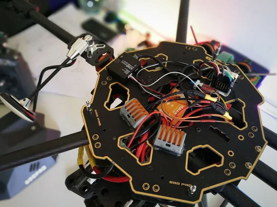 Ich schaute mich nach Hexacopterrahmen um, weil das für mich am sinnvollsten erschien im Sinne der Effizienz. Ein ordentlicher Hexacopter bekäme auch noch locker ein mittelschweres Gimbal mit der Sony a6000 Kamera hoch. Ich fand auf Ebay ein gebrauchten Rahmen mit guten Brusless Motoren, 30 Ampere ESC`s und einem guten Naza V2 HardwareBoard mit GPS. Als ich die Drohne angepasst hatte mit meinem FrSky Empfänger ging erst einmal wieder an den Computer um dort noch die letzten Einstellungen vor zu nehmen. Als ich die Drohne dann zum ersten mal flog konnte ich gar nicht fassen wie einfach und gut er flog mit der DJI Hardware. Die Höhe wird mittels Drucksensor gehalten, die Position wird mittels vielen GPS Satelliten gehalten, selbst bei Seitenwind, und der Copter dreht sich nicht, da er einen Magnetsensor besitzt. Das alles sorgt für ein sehr angenehmes, stabiles Flugverhalten.