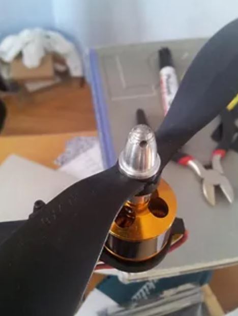 Nach Verpolung der Kabel, damit sich alle Motoren so drehen wie sie drehen sollen (links vorne und rechts hinten im Uhrzeigersinn, rechts vorne und links hinten gegen den Uhrzeigersinn), konnte ich die Propeller installieren. Jetzt ging es an die Anpassungen der PID-Werte.