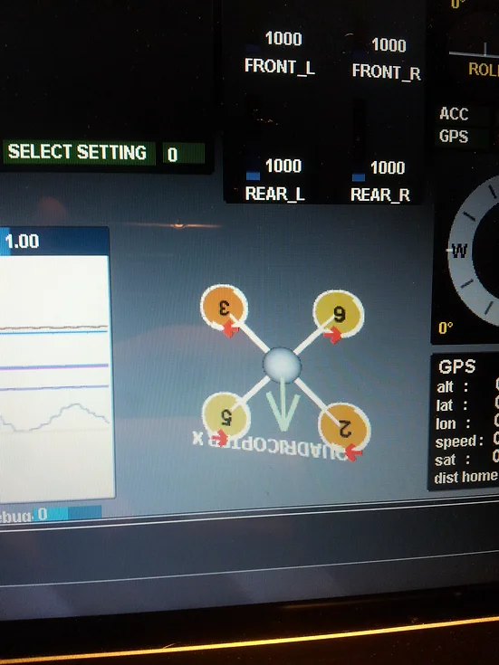 Ein erhebendes Gefühl, als sich zum ersten Mal alle Propeller drehten durch das MultiWiiBoard angesteuert. Ich konnte mein Glück kaum fassen, da es vorher so viele Probleme gab, wie alleine schon der Standardausschlag einer Fernsteuerung von 1150 bis 1850 geht, der nicht ausreicht für das FlightBoard. Obwohl also schon alles funktionieren sollte, funktionierte aus diesem Grund gar nichts, außer dass ich auf dem Bildschirm sehen konnte, wie ich die Fernsteuerungssticks richtig bewege, um zu starten (ARM), die Software dazu aber nicht reagierte. Irgendwann habe ich dann verstanden woran es liegt, habe den Ausschlag auf 1000 bis 2000 gestellt und kam zu dem großen Erfolgsgefühl, durch drehende Motoren ausgelöst.